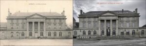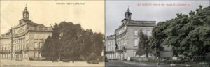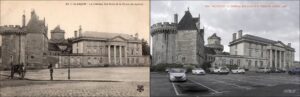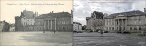 L’hôtel des postes fût bâti par l’architecte Albert Mezen sur l’emplacement du présidial démoli en 1908. La poste se trouvait auparavant rue du Jeudi. La première pierre du nouvel édifice est posée en 1909. Les travaux s’achèvent en 1911 et l’hôtel est inauguré par Joseph Caillaux, Président du Conseil. La cérémonie se déroule en grande pompe : cinq préfets, dix parlementaires, deux généraux, un peloton de gendarmes à cheval, dix fanfares, un arc de triomphe et un banquet de 1 200 personnes suivi d’un feu d’artifice. Le campanile du télégraphe, ébranlé par les bombardements disparaît après la Seconde Guerre mondiale. L’hôtel des postes fut rénové en 2000.